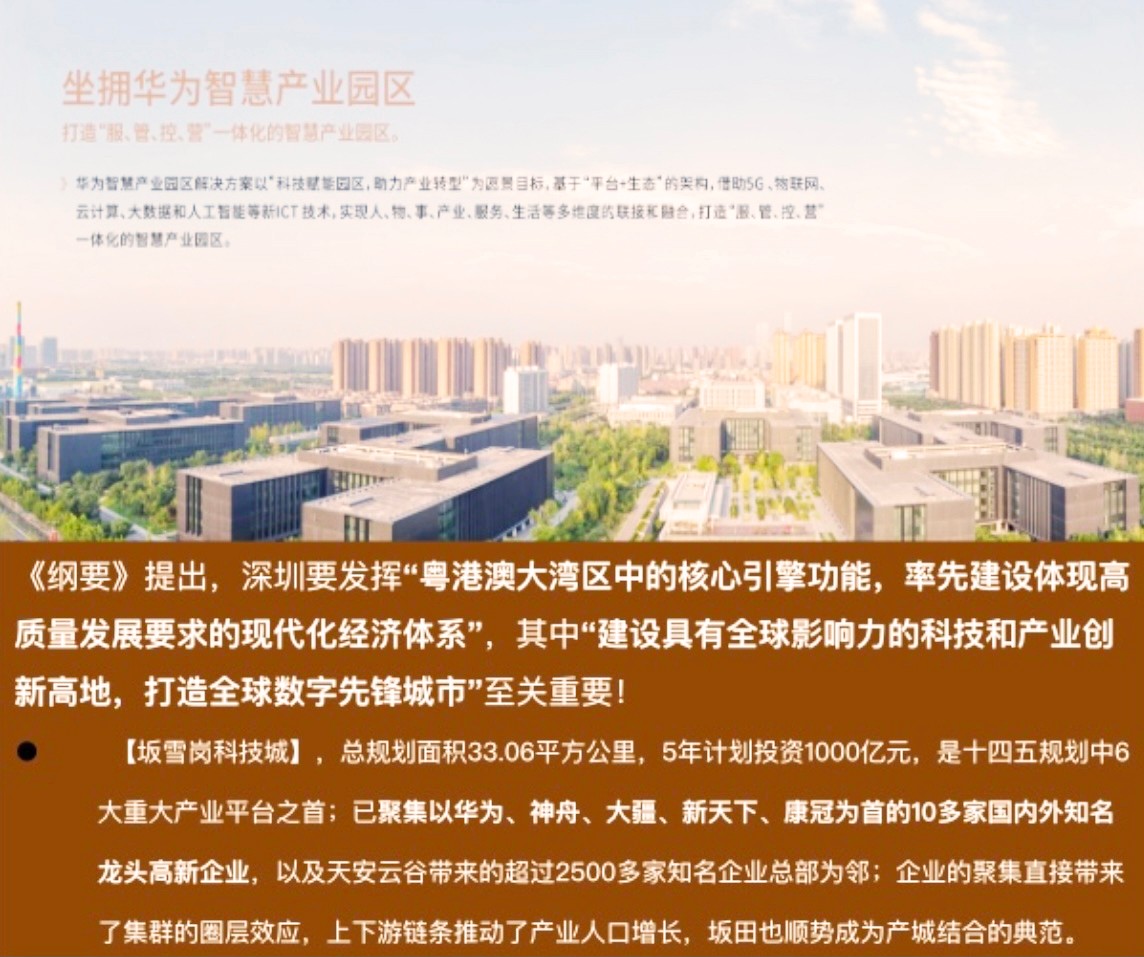 2021年6月發(fā)布《深圳市十四五規(guī)劃綱要》,提出“東進(jìn)、西協(xié)、南聯(lián)、北拓、中優(yōu)的發(fā)展戰(zhàn)略”,同 坐擁華為智慧產(chǎn)業(yè)園區(qū)