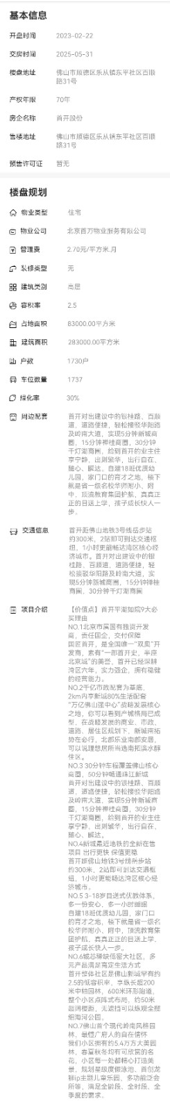 區域:佛山市順德區樂從鎮東平社區百順路31號 最新開盤:2023-02-22