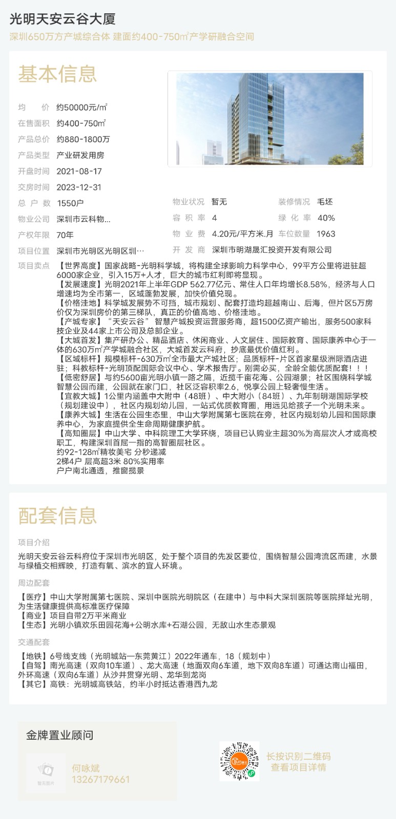 樓盤(pán):光明天安云谷大廈